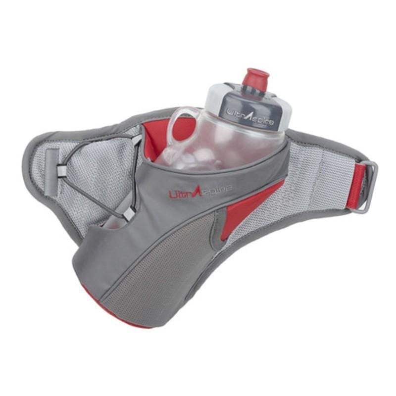A larger capacity 20oz size single bottle holster pack comes standard with Human20F water bottle with finger loop. It will accommodate normal shaped and sport sized bottles. The shock cord may be used to hold a jacket or other essentials and there’s a tiny tuck away pocket to keep the cord pull from bouncing. Flat elastic pocket may be accessed without looking, providing intuitive access for energy gel packets.