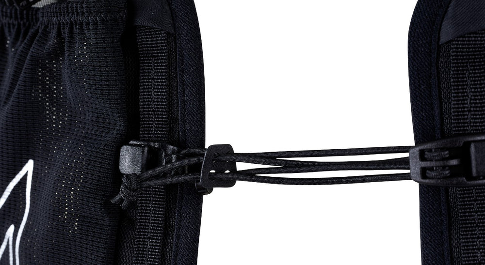 The original Momentum’s accessible rear water bottle pockets were a favorite among UltrAspire athletes. Momentum 3.0 elevates this feature with enhanced Fluidic Holsters that contour more naturally to the body, moving bottles completely out of the arm swing for better comfort and freedom of movement. A newly integrated guided rail system makes rear bottle access even more intuitive, allowing for easy re-stowing on the move. Built as a minimalist 6-liter vest, the Momentum 3.0 features upgraded UltrAcool mesh for greater breathability, and a new MaxO2 closure system that adjusts both vertically and horizontally using a simple hook design for a fully customizable fit. Momentum 3.0 also brings expanded storage: the updated outer quick stash pocket is now accessible mid-run, larger side pockets can now fit bottles, and the front bottle pockets feature an elasticized top with shock cord for extra security. The vest is pole quiver compatible on either side and includes an upgraded zippered shoulder pocket. Available in 3 sizes. Includes 2 x UltraFlask 550 Hybrid Bottles.