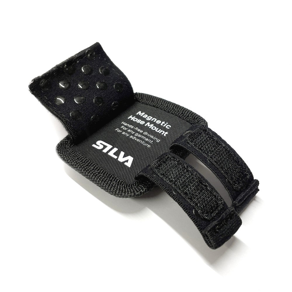 The Magnetic Hose Mount keeps the tube of your Silva hydration belt in place during ski races. The magnetic attachment allows hands-free drinking with the tube attached to your chest. The mount is removable and can be used on different garments and race bibs without causing wear and tear. A smart accessory for your Race Belt 4, Flex Belt 10, or other drinking belts with tube – the straps are adjustable and fit all tube dimensions.