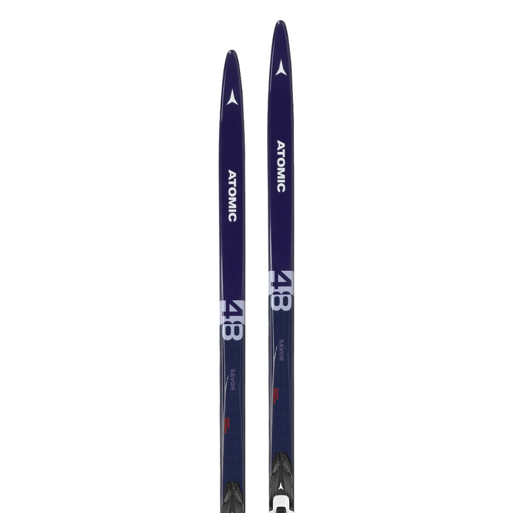 The Atomic Savor 48 Skintec is an easy breezy touring ski, all about making the journey easier so you can get your head up and enjoy your surroundings even more. The broad sidecut makes it really stable. And thanks to waxless Skintec technology there’s no need for time-consuming kick-waxing. Instead, just jump on the ski and the Mohair grip zone gives you a perfect kick and ride in all snow conditions and temperatures! Then if you need to change skins, its quick, easy, and anyone can do it – with the option of a universal skin (pre-set on the ski) and a grip skin with better grip properties. Finally, the ski comes with a ready-mounted Prolink Shift Plate and Prolink Shift Pro classic binding.