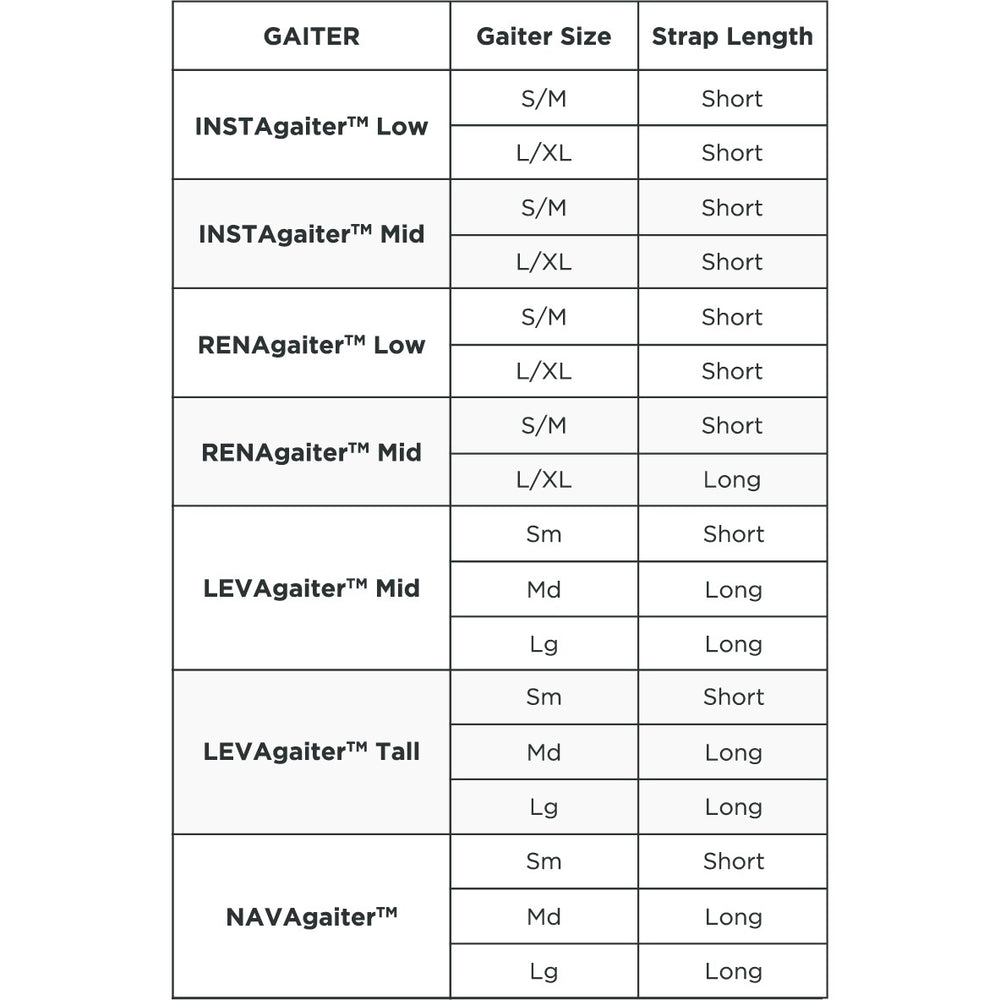 The DuraLink® instep strap compatible with all Kahtoola gaiters features a symmetrical design with large pull tabs for easy adjustment. All straps come standard with a 1000-mile warranty.